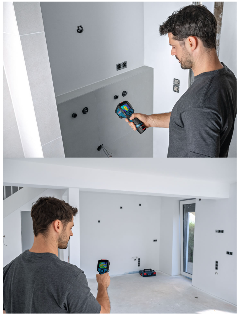 本製品は、レーザー照射で測定箇所をピンポイントで確認できる機能を有し、素早い起動と誰にでも扱える簡単操作で、温度分布を瞬時に探知できます。コンパクトで軽量ながら、幅広い測定温度範囲(-20~+450°C)、熱画像と実画像を重ねた表示等、高機能で多様な用途に対応しています。また、高解像度の2.8インチカラーディスプレイは視認性がよく、本体に装備されているLEDライトにより暗所での作業も快適に行えます。近年、建設・設備・製造分野において、非接触での安全な点検や予防保全の重要性が ますます高まっています。温度差を瞬時に可視化し、目に見えない問題を発見する赤外線サーモグラフィーは、効率的で信頼性の高い診断ツールとして注目されており、GTC 450-13は、「高精度・簡単操作・高い携帯性」という現場のニーズに応えたハイパフォーマンスモデルです。