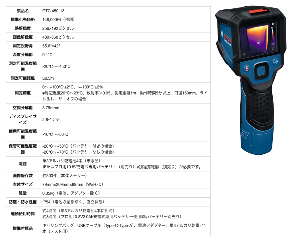 ボッシュ株式会社(本社 : 神奈川県横浜市)は、非接触で、簡単に広範囲の温度分布を可視化できる赤外線サーモグラフィー「GTC 450-13」(標準小売価格 148,000円・税別)を10月20日に新発売します。