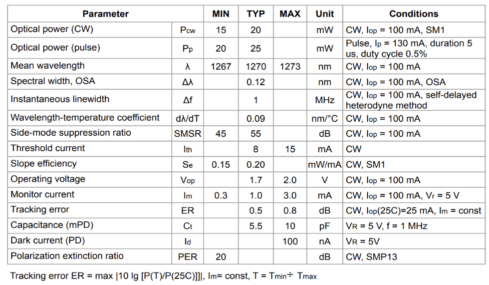 ・レーザーダイオードテレコム 1270 – 1650 nm(型番:LD4B-1270-DFB-10G-15)