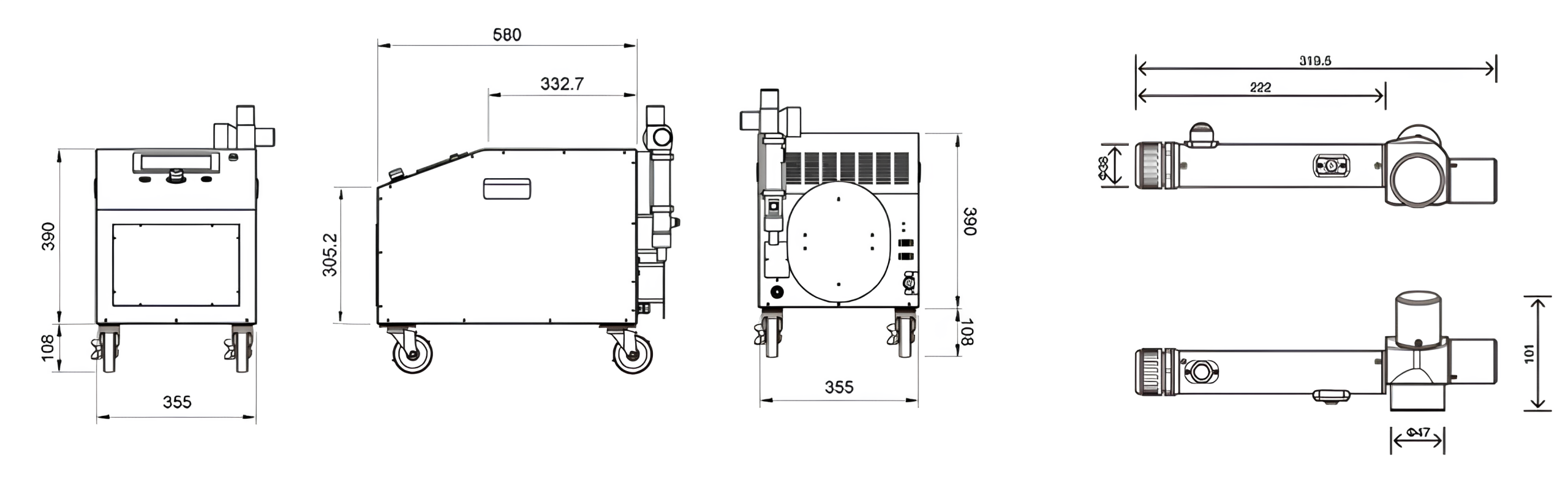 本製品は、最大平均出力300 Wのレーザーパルスを安定して供給し、パルス幅や繰り返し周波数を対象物に合わせて柔軟に制御できる設計を採用しています 。これにより、従来の100 W機では除去に時間を要していた厚いサビ、強固な塗膜、溶接後の付着物(酸化スケールなど)に対しても最適な処理が可能です 。高出力による処理速度の向上と、素材への影響を抑えた仕上がりの両立を実現しています。また、高出力化に伴う発熱・消費電力の問題に対しては、実績のある空冷方式をベースに設計を最適化し、電源系統の効率的な構成を実現しました。これにより、100 V・15 Aの商用電源での運用が可能で、安定した連続稼働を可能にし、多様な現場環境へ導入できる仕様を備えています。