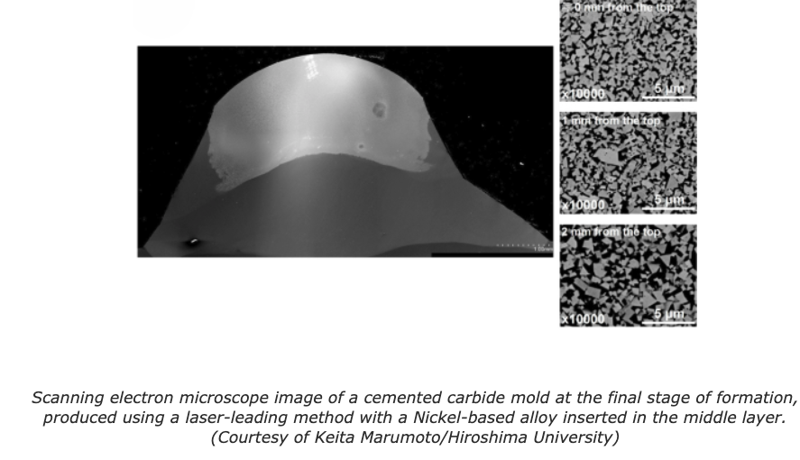 “Cemented carbides are extremely hard materials used for cutting tool edges and similar applications, but they are made from very expensive raw materials such as tungsten and cobalt, making reduction of material usage highly desirable. By using additive manufacturing, cemented carbide can be deposited only where it is needed, thereby reducing material consumption,” said corresponding author Keita Marumoto, assistant professor at Hiroshima University’s Graduate School of Advanced Science and Engineering.